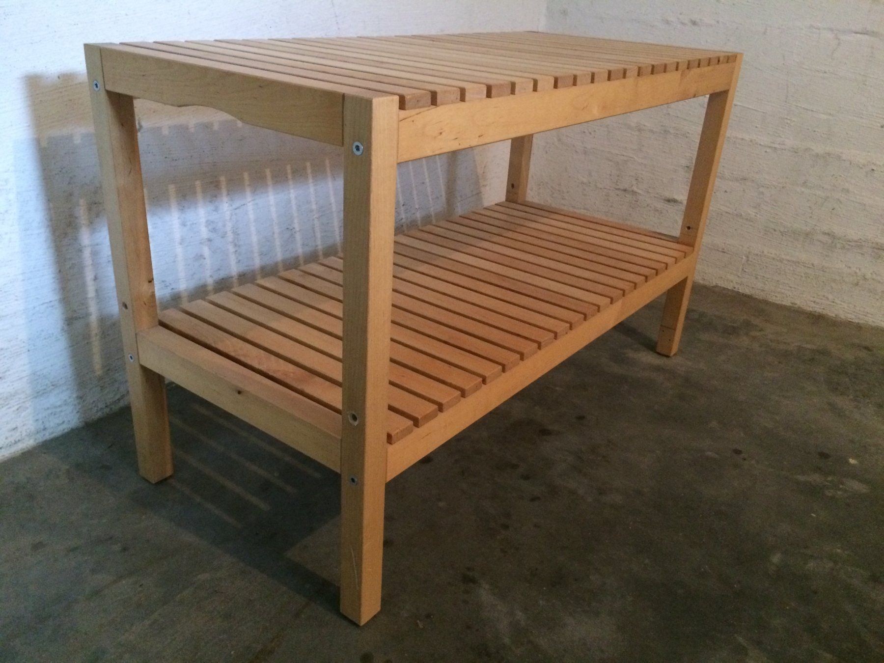 Massive schuhbank aus hochwertigem wildeichenholz.